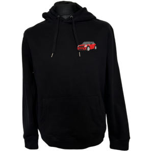 Czarna bluza kangurka z haftem MINI COOPER – klasyka motoryzacji w nowoczesnym wydaniu.