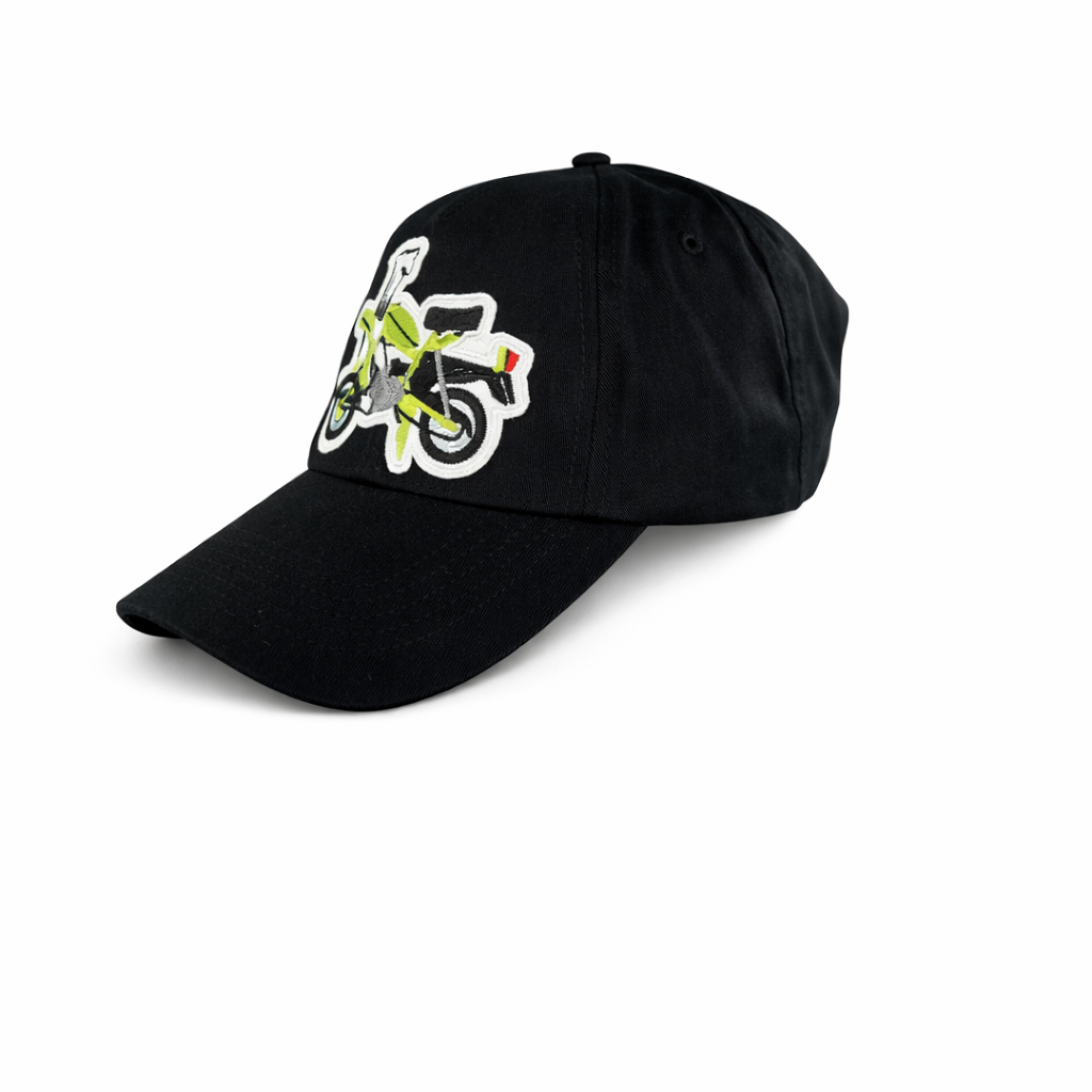 Czapka z daszkiem czarna z naszywką Motorynka Romet Pony – limonkowa haftowana