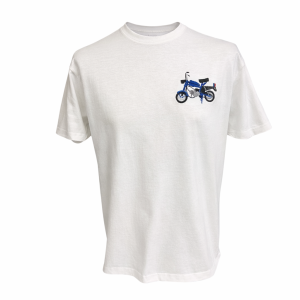 Koszulka biała z haftem Motorynka – niebieska