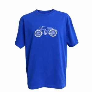 Koszulka dziecięca chabrowa z haftem Komar Sport – szkic w bieli to hołd dla klasyki polskiej motoryzacji w nowoczesnym, dziecięcym wydaniu. Idealna dla małych pasjonatów stylu retro!