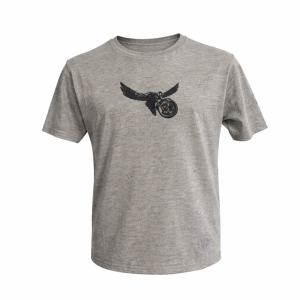 Koszulka dziecięca z haftem | Motocykl ze skrzydłami – szara