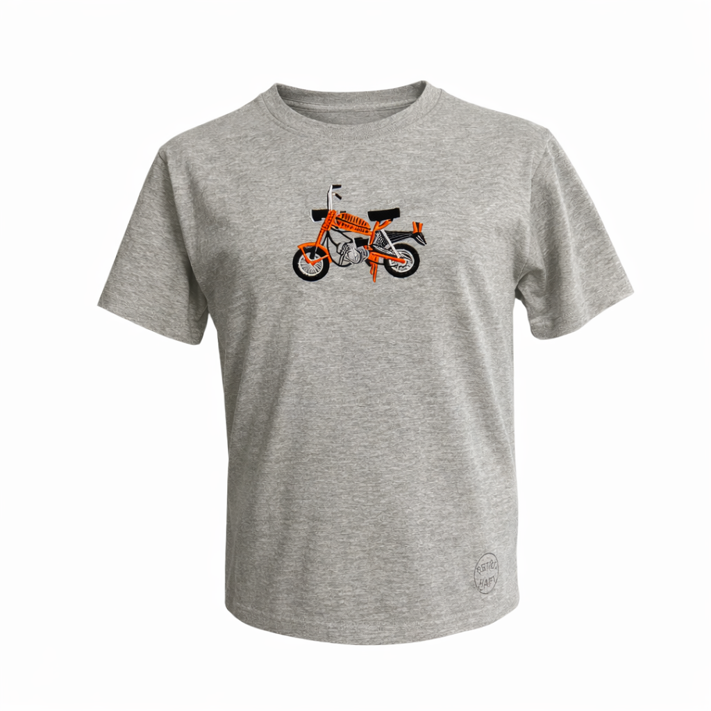 Koszulka dziecięca szara z haftem Motorynka – pomarańczowa | Retrohaft