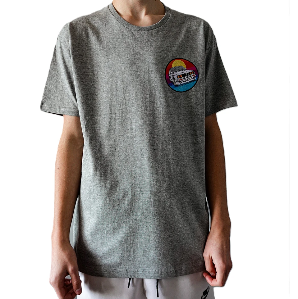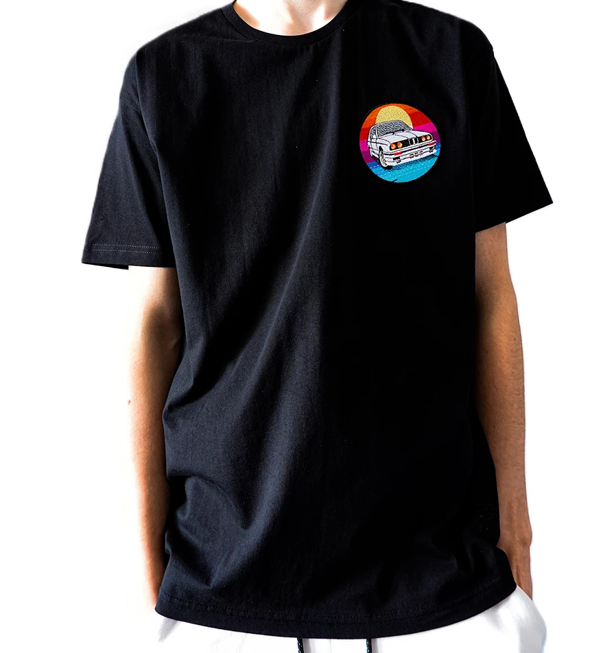 Koszulka wykonana została z wysokogatunkowej bawełny, zapewniającej komfort i trwałość przez długi czas użytkowania. Haft komputerowy przedstawiający legendarny model BMW E30 M3 zachwyca detalami i kolorystyką inspirowaną szalonymi latami 80.