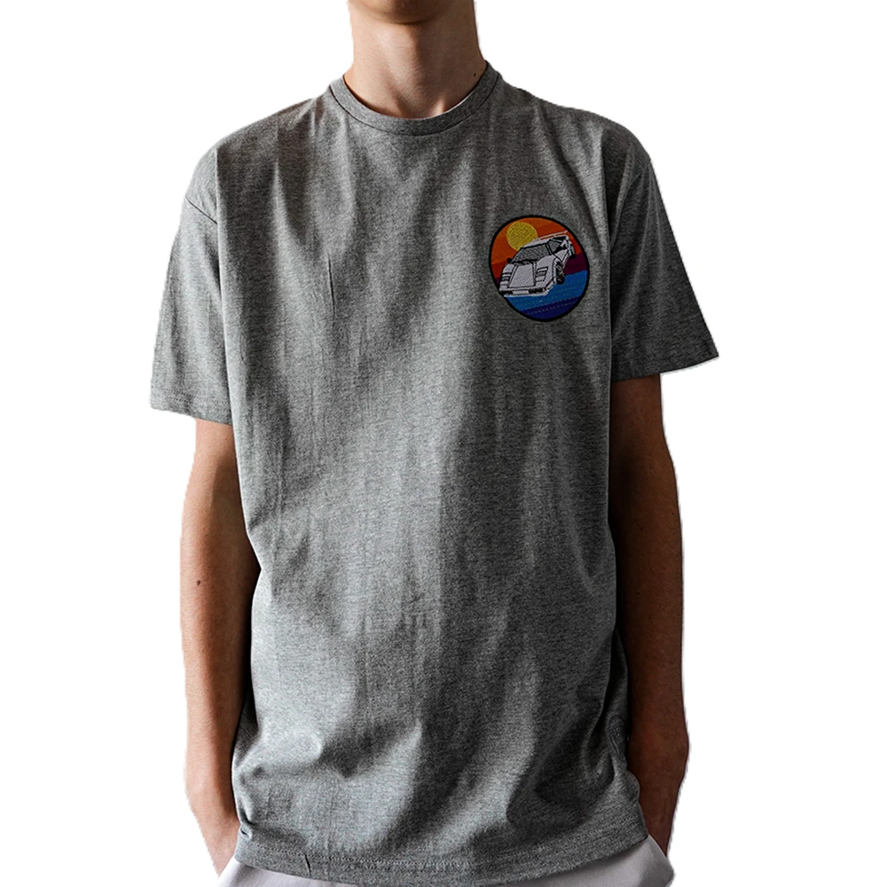 Marzenie wielu z lat 80-tych – teraz dostępne na wyjątkowej koszulce! Haft komputerowy przedstawia kultowy model Lamborghini Countach w kolorowej retro stylistyce.