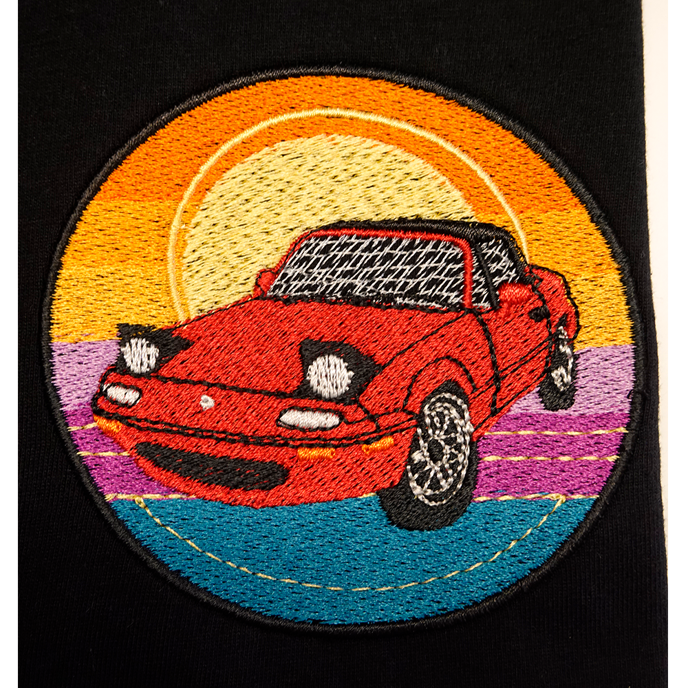 Uwielbiasz stylowe kabriolety i wolność na drodze? Koszulka RetroHaft z haftem Mazdy MX5 przeniesie Cię prosto w klimat szalonych lat 80.