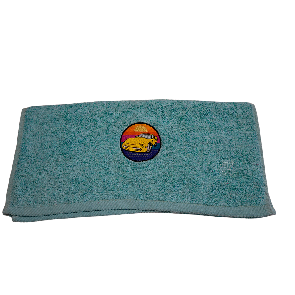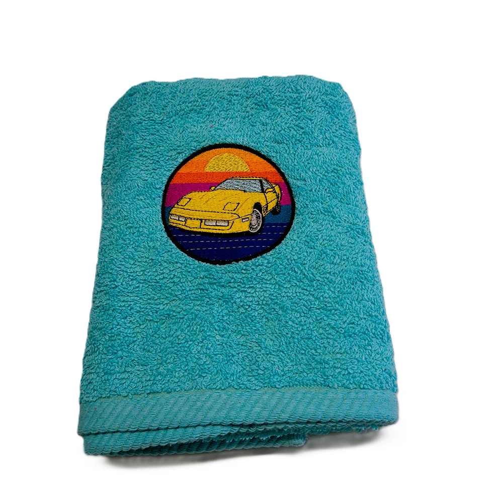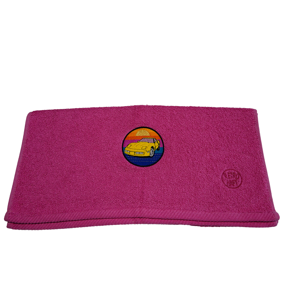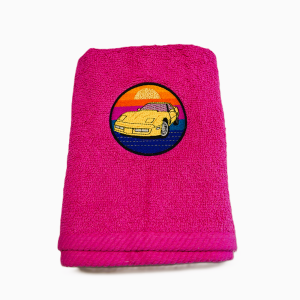Ręcznik z haftem Corvette C4 – turkusowy, różowy lub ciemnoszary