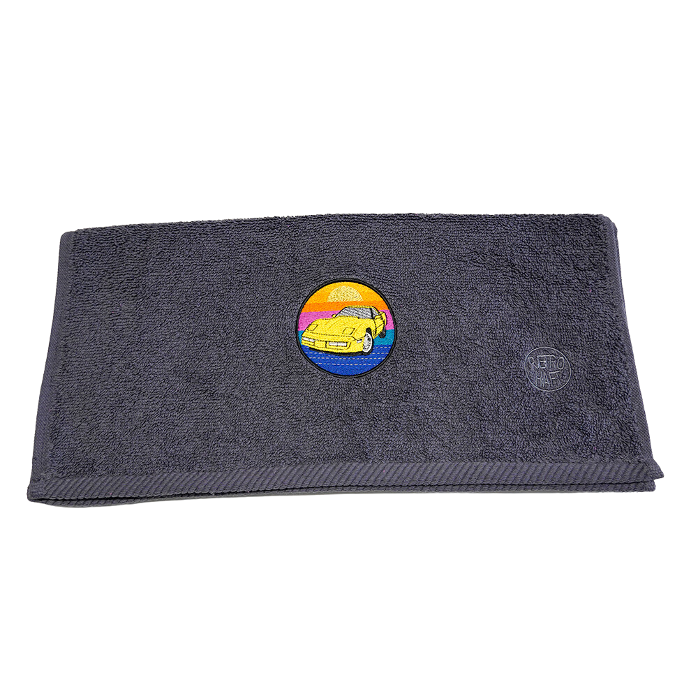 Ręcznik z haftem klasycznej Corvette C4 – miękki, chłonny i pełen stylu. Trzy kolory do wyboru!